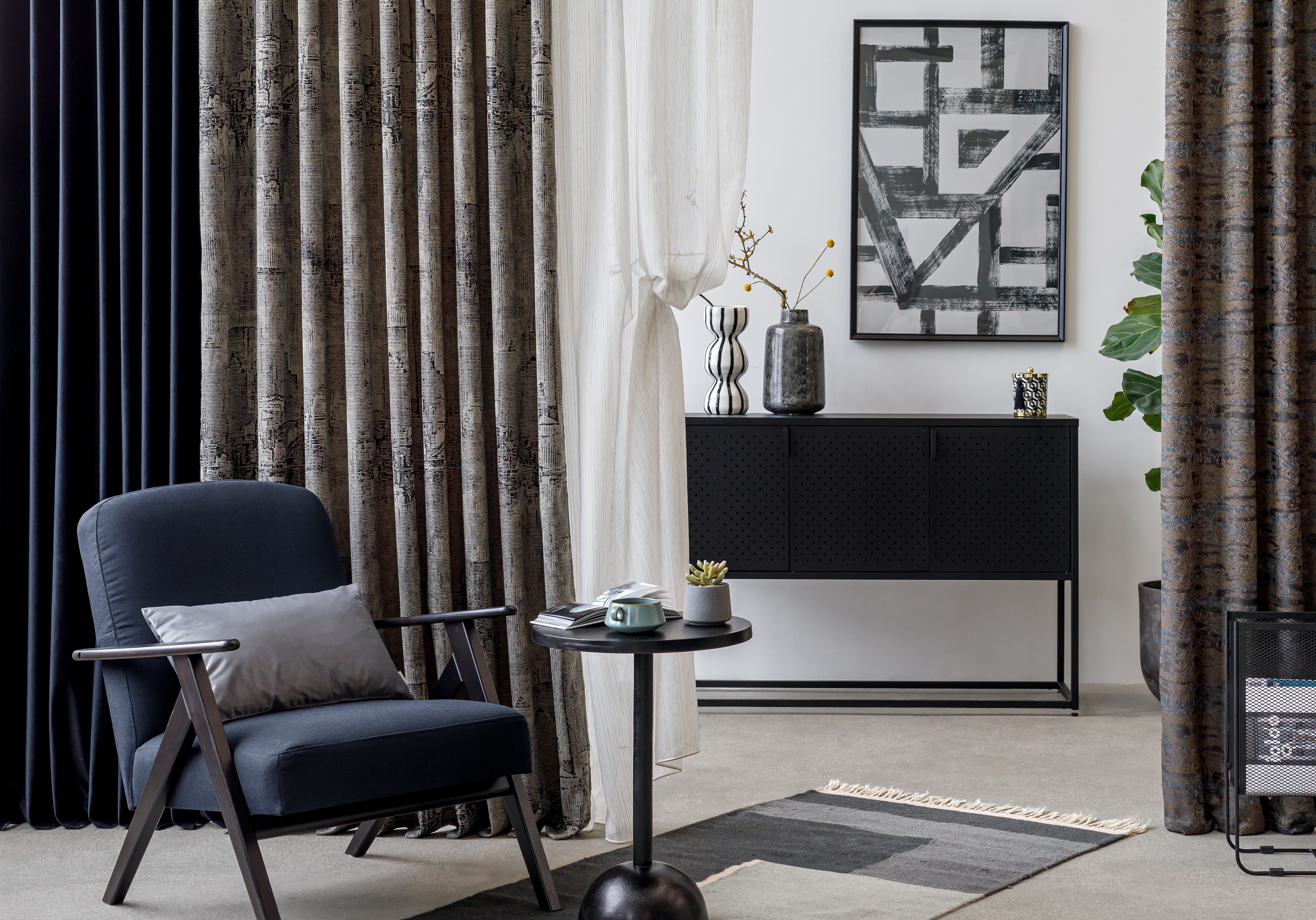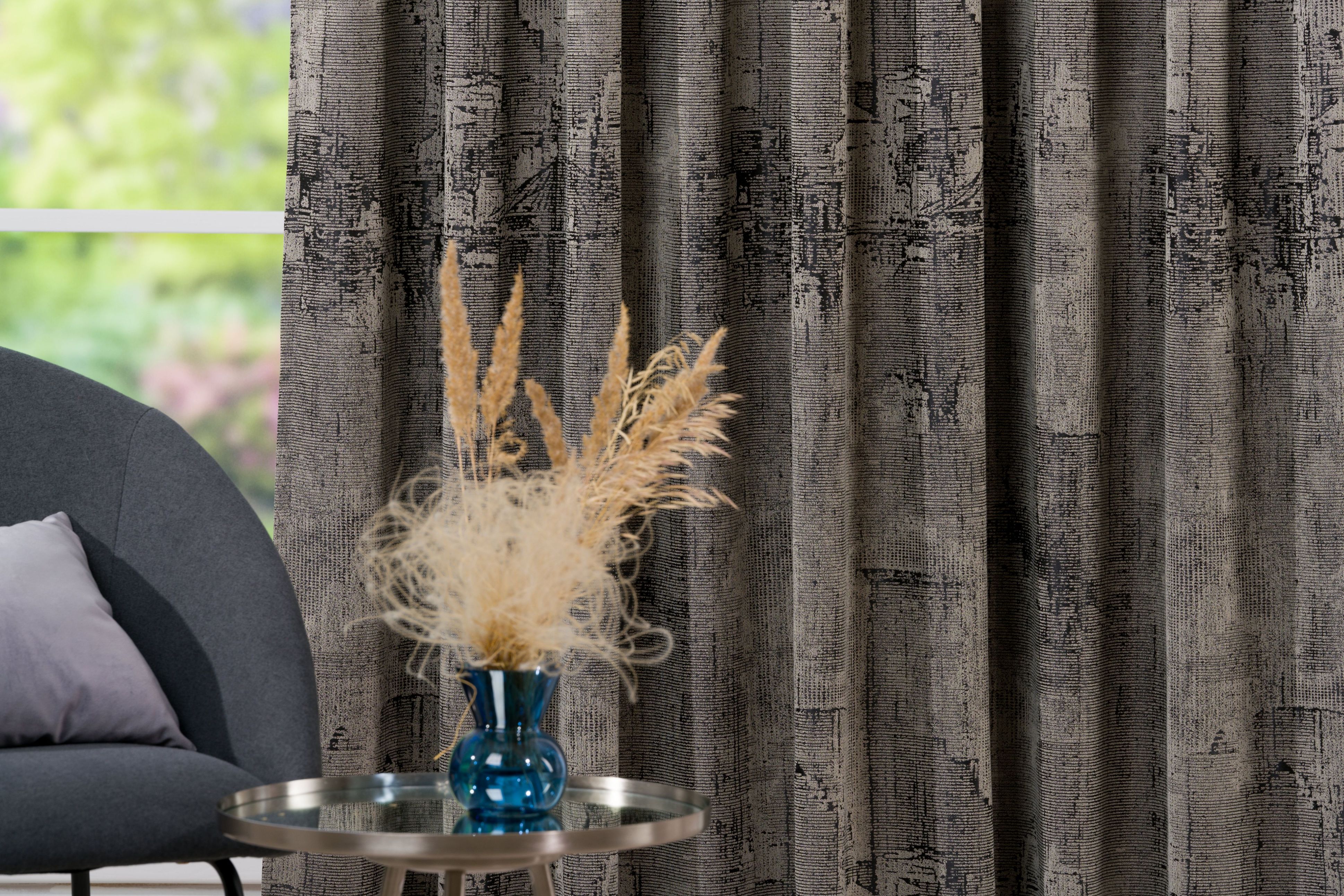 Imprimeul draperiei Cobalt este inspirat într-o modalitate abstractă din peisajul somptuos al marilor orașe. Nuanțele puternice de negru și gri alături de irizațiile sidefate cu tente de roz, pot oferi un plus de stil oricărei amenajări.