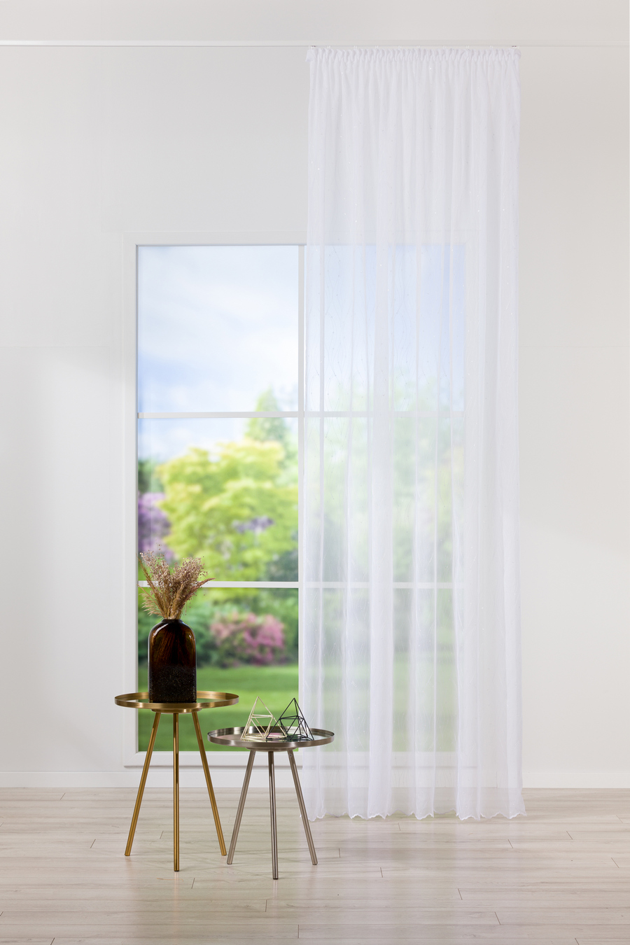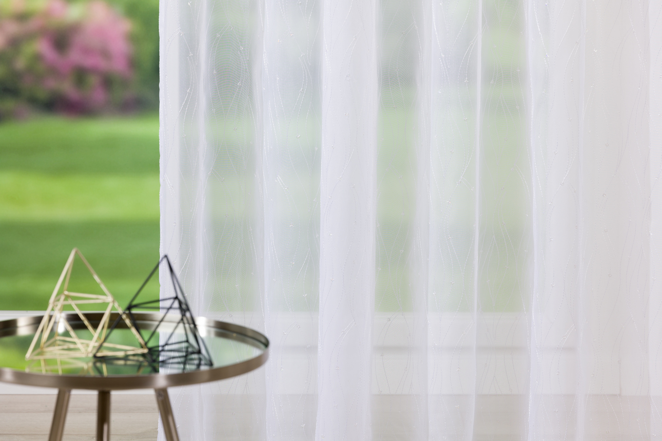 Polly este o perdea cu un pattern abstract pus în valoare de paiete albe fine.